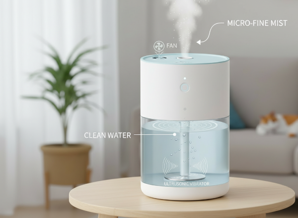 ファンを高速回転させて風を送る「気化式」や、お湯を沸かすコトコト音がする「スチーム式」と違い、振動でミストを作るため、動作音は非常にわずかです。