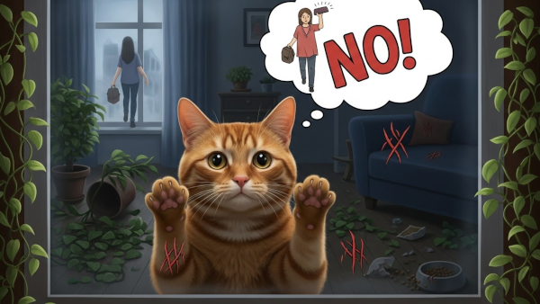 あなたの姿が見えない不安に、胸を締め付けられるような声で鳴く猫ちゃん。分離不安症かも。