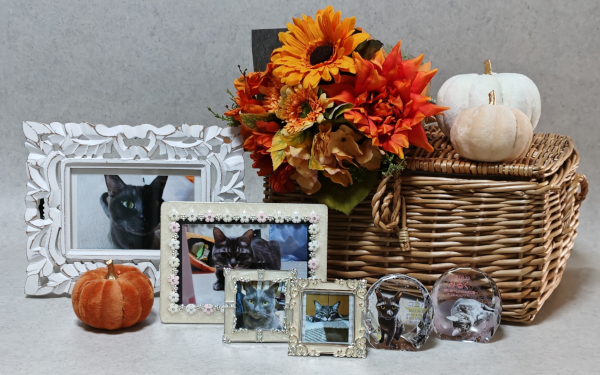 こんな風に、ハロウィンやクリスマスは亡き彼らと記念撮影もできるので、位牌を作ったり、フォトフレームを買ったりして良かったです。